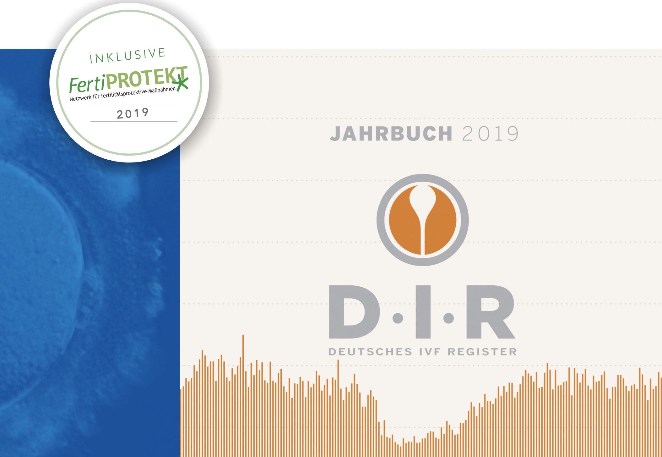 * Bildquelle: Auszug aus der Titelseite des Jahrbuchs 2019 des Deutschen IVF-Registers (D·I·R)®. Erschienen: Krause und Pachernegg GmbH, Verlag für Medizin und Wirtschaft, 17. Jahrgang 2020 // Modifizierter Nachdruck aus Nummer 5: 199–239 // ISSN 1810-2107. Graphiken: Soo-Hee Kim.