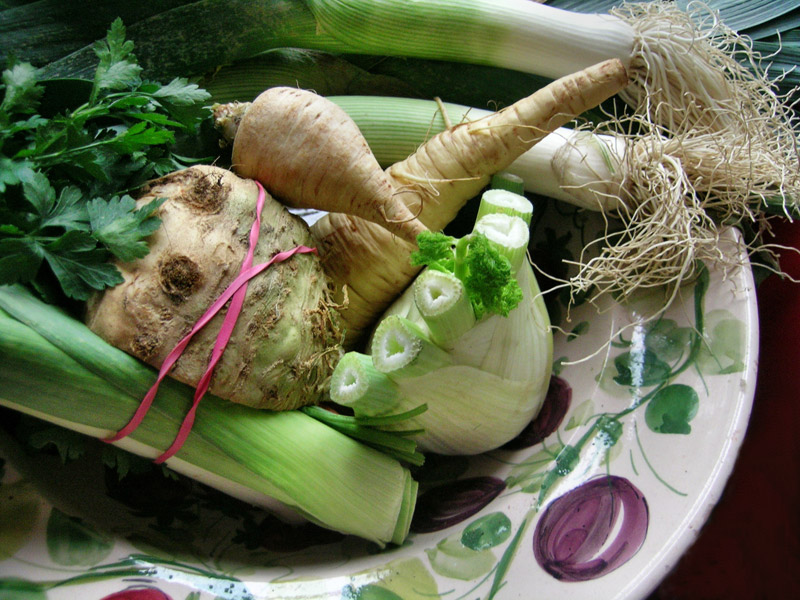 Auch Sellerie tut dem Bluthochdruck gut, da er sogenannte Phthalide, ätherische Öle, enthält, die die Gefäße weiten und zugleich Stresshormone abbauen. Ein weiteres Argument: die nur 15 Kalorien, die in 100 gr Sellerie enthalten sind. Neben den Phthaliden enthält Sellerie auch viele Vitamine und Mineralstoffe, bspw. Kalium, Natrium, Magnesium und Kalzium. Ein hoher Kaliumgehalt hilft bei rheumatischen Erkrankungen und Gicht.